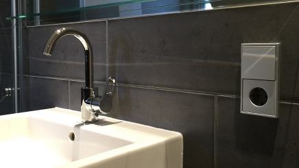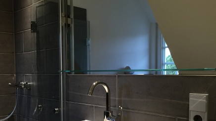 ist direkt von der Eingangsdiele aus erreichbar, die das Badezimmer von